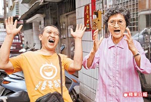 “笑長(zhǎng)”陳萬火帶罹癌的媽媽陳李絨每天大笑養(yǎng)生,有時(shí)還會(huì)戴小丑鼻娛樂媽媽。來源:臺(tái)灣《蘋果日?qǐng)?bào)》