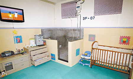臺(tái)北女子看守所規(guī)定,若收容人有3歲以下子女無(wú)親友幫忙照顧,可申請(qǐng)帶入所內(nèi)一起作息,所內(nèi)保育室有空調(diào)設(shè)備,還有玩具、嬰兒床、學(xué)步車,有收錄音機(jī)播兒歌,有電視看兒童節(jié)目等影片,所方還會(huì)安排一名收容人,協(xié)助照顧剛生產(chǎn)的收容人。(中國(guó)臺(tái)灣網(wǎng) 陳佳慧)