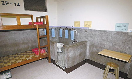 臺(tái)灣的看守所在夏天僅提供冷水、冬天洗澡時(shí)間才提供熱水,舍房里僅在上下鋪之間有一片固定的木板當(dāng)書(shū)桌。臺(tái)當(dāng)局“法務(wù)部”表示,由于經(jīng)費(fèi)有限,改善監(jiān)所設(shè)備將以“女先于男”、“被告(指看守所)先于受刑人(指監(jiān)獄)”的順序進(jìn)行。