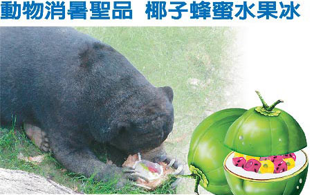 高雄市壽山動(dòng)物園的紅毛猩猩、馬來(lái)熊更高檔,大吃食材豐富的“椰子蜂蜜水果冰”,樂(lè)不可支。