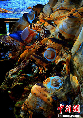 進入7月中下旬的臺灣野柳地質公園旅游區(qū)游人大增,觀光客游趣濃厚的野柳地質公園是一處突出海面的岬角,受海浪侵蝕、巖石風化等作用,形成蜂窩巖、菌狀巖、姜狀巖、臘燭臺等各種各樣的奇特景觀。中新社記者 宋吉河 攝