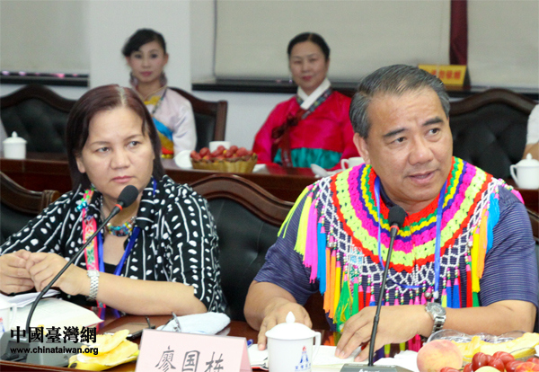 臺(tái)灣少數(shù)民族民意代表、中華兩岸少數(shù)民族知識(shí)經(jīng)濟(jì)交流協(xié)會(huì)理事長(zhǎng)廖國(guó)棟,在“寧夏、臺(tái)灣少數(shù)民族座談會(huì)”上發(fā)言。(中國(guó)臺(tái)灣網(wǎng) 陳佳慧 攝)