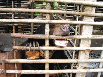 嘉義市北港路一家貨車修護(hù)廠飼養(yǎng)的馬來熊出現(xiàn)“咬欄桿”的異常行為。圖片來源:聯(lián)合報