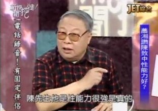 蕭湘居士在節(jié)目中談到,一般說法鼻子大代表性能力強(qiáng),其實(shí)以中醫(yī)觀點(diǎn)看來,要看性能力好壞與否重點(diǎn)在下巴。他說,下巴屬水、額頭屬火,水系統(tǒng)包括泌尿、生殖,恰巧陳致中下巴“又厚又長”,所以性能力好。