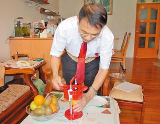 生命經(jīng)過多次起伏,邱德盛形容自己已不知道還有多少時間,而發(fā)明能讓自己轉(zhuǎn)移注意力,并安心、有規(guī)律的生活。趁著養(yǎng)病過程,他陸續(xù)完成4項發(fā)明,其中,削切兩用刀、水果切片刀,更獲得2009年臺北國際發(fā)明展的金獎與銀獎。