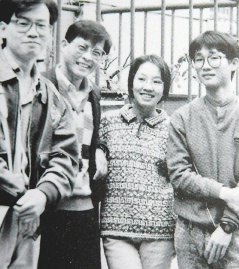 “紅衫軍”前總指揮施明德妻子陳嘉君(右二)有雙水汪汪的大眼睛,20年前兩人初次邂逅,施認(rèn)為兩人年紀(jì)差太大,不敢有非分之想,但最后陳嘉君仍擄獲了這位“好色男人”的心。圖為陳嘉君在東吳大學(xué)時期的照片。圖片來源:臺灣《聯(lián)合報》