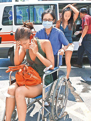 休旅車駕駛馮凌儷送醫(yī)時懊惱地打電話,她的同事李香凝(后)雖也受傷,但仍可步行走進(jìn)醫(yī)院。來源:臺灣《中國時報》