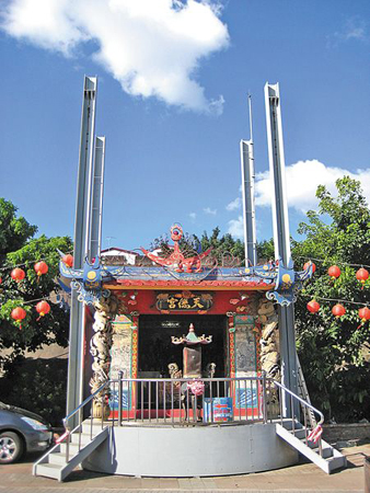 天德宮前身被視為違章,居民為了躲避公務(wù)人員拆除,一度改建為可移動(dòng)的廟宇,查報(bào)人員一來就扛著廟跑。來源:臺灣《中國時(shí)報(bào)》