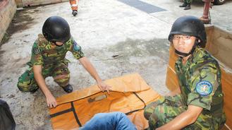 昨天早上10點(diǎn)左右,身材嬌小的李柏穎頂著艷陽(yáng)天,雙手抱著用報(bào)紙簡(jiǎn)單包裹住的未爆彈,從住家徒步走了600米,到消防隊(duì)求助。他神情緊張,欲言又止,值日的小隊(duì)長(zhǎng)李澍蔚很疑惑,主動(dòng)關(guān)心“小朋友,有什么事嗎?”
