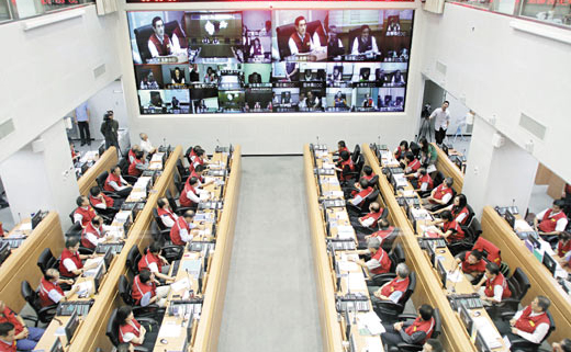“凡亞比”臺風(fēng)來勢洶洶,馬英九到臺灣災(zāi)害應(yīng)變中心聽取簡報,并與臺灣各縣市首長進(jìn)行視訊會議。 來源:臺灣《聯(lián)合報》