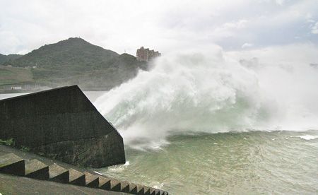 “凡亞比”臺風(fēng)風(fēng)強雨大,造成高雄市區(qū)積水嚴(yán)重,汪洋一片。 來源:臺灣《中國時報》