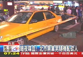 沒想到這名男子離開之后,還騎著腳踏車沿路隨機(jī)砍人,在經(jīng)過一輛出租車旁時(shí),又對(duì)著司機(jī)狂砍,另一名經(jīng)過的路人也遭殃,一個(gè)晚上,總共4名無辜人士被他砍傷,其中一名在送醫(yī)過程中,已經(jīng)沒有生命跡象,目前還在搶救中。
