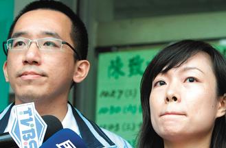 陳致中召妓案16日上午判決,陳致中被認(rèn)定有召妓,陳致中(左)召開記者會(huì)表示會(huì)上訴到底,黃睿靚(右)則是眼眶泛紅表達(dá)對(duì)丈夫支持,也相信他絕對(duì)沒有召妓。 圖片來(lái)源:臺(tái)灣“聯(lián)合新聞網(wǎng)”