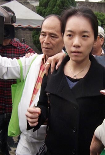 陳水扁的女兒陳幸妤(中)10日首度前往臺北監(jiān)獄探視陳水扁。8日,陳水扁的兒子陳致中曾前往臺北監(jiān)獄探父,陳致中帶著一些家常菜給父親品嘗,是第一位探監(jiān)的家屬。圖片來源:臺灣“中央社”