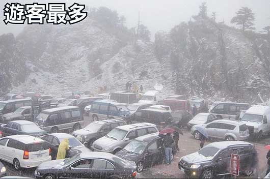 大批游客涌上合歡山賞雪,車輛把武嶺停車場塞爆。圖片來自網(wǎng)絡(luò)