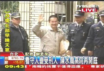 據(jù)臺灣TVBS電視臺報道,陳水扁因?yàn)辇執(zhí)顿彽乇装浮㈥惷艮谷耸掳赣凶锒ㄗ,“高院”定?7年6個月的合并執(zhí)行刑,在2日發(fā)監(jiān)服刑后,今天(21日)“高院”審理“機(jī)密外交案”,首度傳喚阿扁到庭。