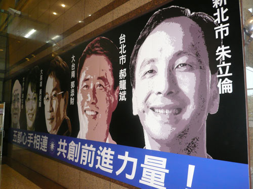 國民黨當(dāng)初為因應(yīng)“五都”選舉,特別在中央黨部1樓大廳兩側(cè)張貼巨型的“五都”市長候選人看板,訴求“‘五都’心手相連,共創(chuàng)前進(jìn)力量。”看板上,新北市長候選人朱立倫、臺(tái)北市長候選人郝龍斌、臺(tái)南市長候選人郭添財(cái)、高雄市長候選人黃昭順、臺(tái)中市長候選人胡志強(qiáng)的照片一一呈現(xiàn)。