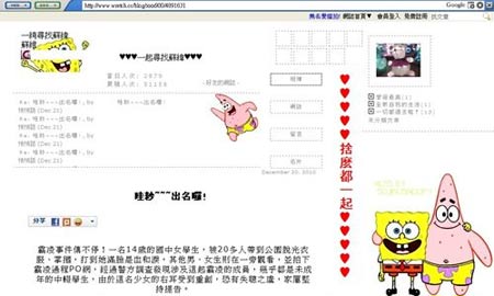 據(jù)臺灣“今日新聞”報道,媒體日前曾報道一名初二女生遭霸凌,她被20多人拖到公園扒光衣服、煽巴掌,右耳甚至因此喪失聽力。沒想到,一名疑似在現(xiàn)場的青少女,事后竟然在部落格(博客)上譏諷該少女“被打到出名”,甚至用“破麻”形容對方。更因此在網(wǎng)絡(luò)上與人對嗆,自稱“小四就離家,現(xiàn)年小六,日入10萬”,經(jīng)人肉搜索后被發(fā)現(xiàn)其實(shí)是17歲的中輟生。