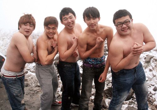 上午十一點(diǎn)以后,連海拔二千七百五十六米的鳶峰路段都結(jié)冰,南投縣翠峰派出所警察緊急擴(kuò)大管制,因上山追雪游客比假日少,交通大致順暢。昨天上山游客沒想到會碰到下雪,一群來自成大醫(yī)學(xué)院的十多名男女學(xué)生,見到2011年第一場雪從天而降樂翻天,搶著拍照、打雪仗、堆雪人,有人邊發(fā)抖邊脫光上衣,裸身仰天迎雪。
