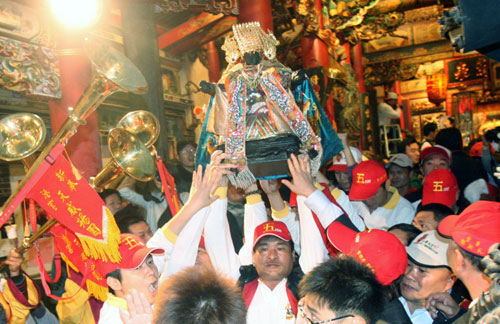 新港奉天宮開臺媽祖于9日晚上6時起駕,展開為期9天8夜的繞境,將走過13鄉(xiāng)鎮(zhèn)、100間廟宇為嘉南平原這塊土地祈福;“立法院長”王金平、嘉義縣長張花冠、嘉義市長黃敏惠、國民黨籍“立委”翁重鈞、民進黨籍“立委”陳明文等人皆到場徒步扶轎。