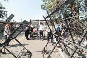 陳水扁妻子吳淑珍今天將送臺中監(jiān)獄服刑,警方在監(jiān)獄入口處架設拒馬,防止沖突。圖片來源:臺灣《聯合報》