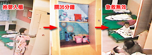 保母張翊玟疑因鄭姓女嬰哭鬧,將她關在置物柜35分鐘,發(fā)現(xiàn)女嬰沒有氣息時趕緊急救,但已無法挽回性命。(圖片來源:臺灣《聯(lián)合報》)