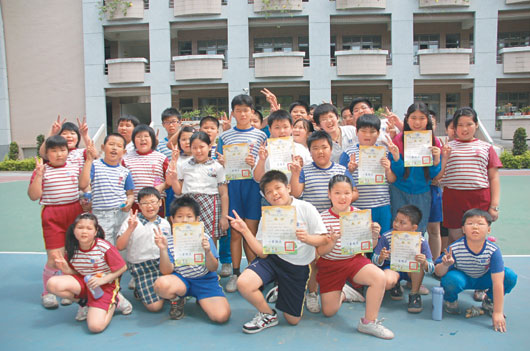 嘉義胖弟胖妹多,嘉義縣府下月將舉辦“嘉義縣2011年減重計劃”,洗刷肥胖標(biāo)簽。圖為之前減重成功的學(xué)童開心比YA的畫面。