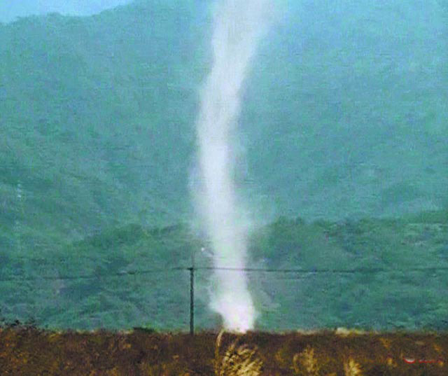 中國臺灣網(wǎng)3月3日消息 據(jù)臺灣媒體報道,出現(xiàn)在沙漠中的陸上龍卷風竟然在臺灣屏東縣發(fā)生。日前,屏東一男子開車行經(jīng)一處農(nóng)地,他先看到塵土飛揚,后來驚見兩道半徑逾5米的龍卷風,并逐漸靠攏,30秒后結(jié)合在一起往南移動,約10多層樓高。約5分鐘后,龍卷風離開,農(nóng)地才歸于平靜。