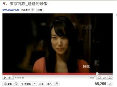 據(jù)臺灣“今日新聞網(wǎng)”報道,比起90年代,現(xiàn)在的臺灣電視廣告顯得乏味僵硬,當網(wǎng)絡游戲廣告與看板式廣告充斥的年代,臺灣觀眾要尋求30秒的感動,必須得從網(wǎng)絡去挖掘。最近兩段日本東京“瓦斯”廣告影片就發(fā)揮催淚效果,讓許多臺灣網(wǎng)友感動到不能自己。