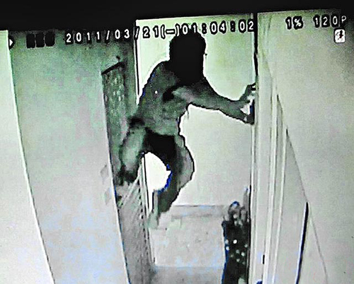 監(jiān)視器拍下徐文彥爬進前女友住處,并在墻上留下辱罵字眼。圖片來源:臺灣媒體