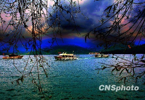 資料圖:稱謂“天池”的日月潭,臥伏在玉山和阿里山之間的山頭上,湖岸周長35公里,水域9平方公里多,最深處達(dá)三十米。夏季里,這處“青山擁碧水,明潭抱綠珠”的自然景區(qū),吸引各地游客前來避暑觀光。 中新社發(fā) 宋吉河 攝