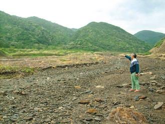 臺東縣達仁鄉(xiāng)南田村民張見賢伸手往前一指,表示前方就是臺電核廢料處置場的預(yù)定地。圖片來源:臺灣《聯(lián)合報》