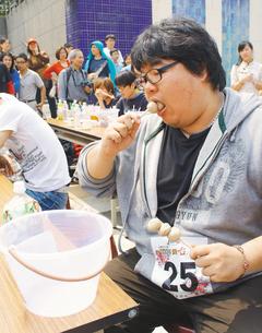 冠軍呂彥德用67分37秒吃完100顆摃丸。圖片來源 :臺(tái)灣《聯(lián)合報(bào)》
