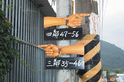 據(jù)臺灣聯(lián)合報報道,臺東金峰鄉(xiāng)賓茂村街道錯綜復(fù)雜,為方便到訪游客尋路,結(jié)合地方采風(fēng)設(shè)計“手指”指示牌,戴著琉璃珠的手臂,清楚地讓訪客辨識各街巷,也融合了當(dāng)?shù)嘏艦匙宓膫鹘y(tǒng),意外成為在地特色。