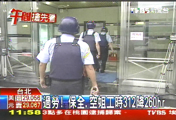 新制度上路,每天工時從12小時,降到不超過10小時,4周至少要有4天例假。以保安為例,平均薪資2到3萬新臺幣,以后恐怕就拿不到加班費。為了配合新制度,業(yè)者成本提高,服務(wù)費加在消費者身上,保安人員要養(yǎng)家活口,可能還需兼職貼補家用。中興保安副總經(jīng)理朱漢光說:“降低工資對業(yè)者來講是個很大的沖擊,不過一般可以調(diào)整服務(wù)流程,還有內(nèi)部人員調(diào)度,當(dāng)然短少人力的話,還要重新招募!