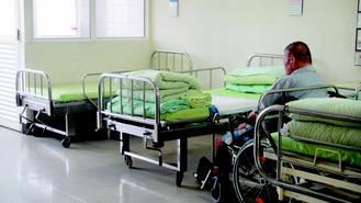 監(jiān)獄目前仍有政商名人,臺中病監(jiān)就收容前“立委”廖福本、彰化前議長白鴻森等人。圖為廖福本坐在病舍的孤獨身影,令人不勝欷歔。