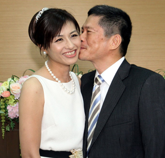 李永得(右)親吻邱議瑩(左),邱議瑩笑得燦爛甜蜜 圖片來源:臺灣媒體