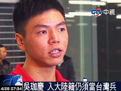 資料圖:吳珈慶雖入大陸籍,但依照臺灣方面的相關規(guī)定,他仍須回臺面對“兵役問題”。