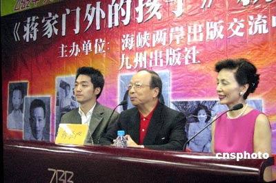 資料圖:蔣介石之孫、蔣經(jīng)國(guó)之子蔣孝嚴(yán)(中)在北京簽售其新書《蔣家門外的孩子》。圖為蔣孝嚴(yán)在簽售活動(dòng)中介紹自己認(rèn)祖歸宗的坎坷歷程,和著書心得,其夫人黃美侖(右)和兒子蔣萬安(左)陪同在側(cè)。 中新社發(fā) 黃少華 攝