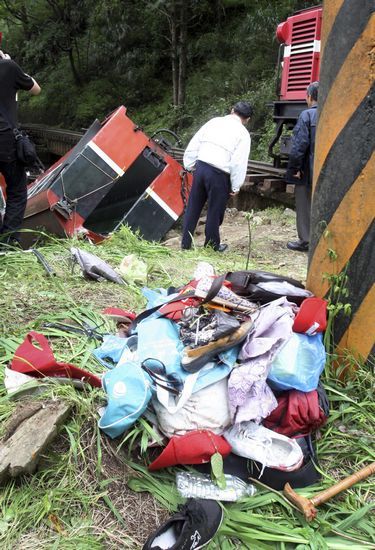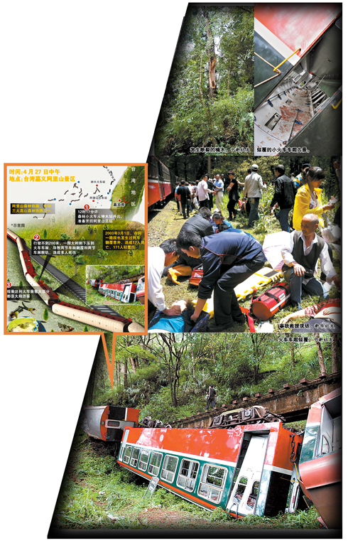 昨日,救援人員在臺灣阿里山小火車翻車事故現(xiàn)場