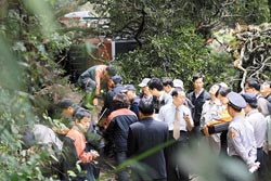 嘉義地檢署檢察官除了確認(rèn)肇事樹(shù)種為森氏櫟外,檢方與林業(yè)專家還檢查倒伏鐵軌的樹(shù)干斷面,判斷腐朽程度與范圍。圖片來(lái)源:臺(tái)灣《中國(guó)時(shí)報(bào)》