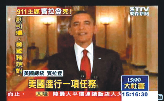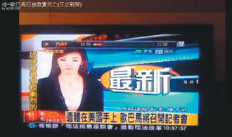 中國臺灣網(wǎng)5月4日消息 據(jù)臺灣《聯(lián)合報(bào)》報(bào)道,世界頭號恐怖分子本拉登遭擊斃,大概新聞太過震撼,竟同時(shí)“擊斃”不少電視新聞臺的專業(yè)人士。日前,臺灣三立電視臺新聞主播戴心怡播放新聞時(shí),直接念“美國證實(shí)奧巴馬已經(jīng)死亡”;臺灣東森電視臺更在標(biāo)題上用“美國總統(tǒng)本拉登”,不知情的觀眾一轉(zhuǎn)臺,看到被嚇出一身冷汗。