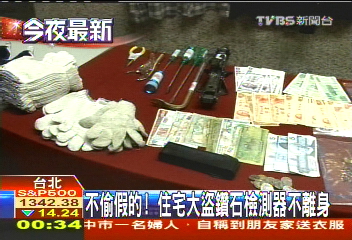 中國臺灣網(wǎng)5月5日消息 據(jù)臺灣TVBS電視臺報(bào)道,臺北市警方日前抓到一名住宅大盜,嫌犯利用千金頂破壞門鎖行竊,得手后的贓物都在網(wǎng)絡(luò)上變賣,目前至少犯案8起。警方表示,為了辨別民眾家里的鉆石、鉆表是真是假,嫌犯竟然還隨身攜帶鉆石檢測器,“手法細(xì)膩”。