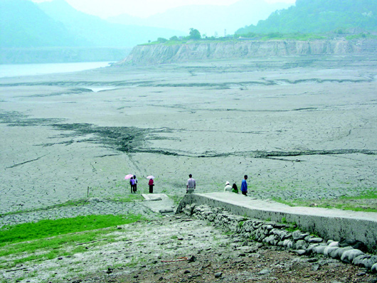 臺(tái)灣石門水庫(kù)大干旱,水位下降,造成溪床見(jiàn)底。圖片來(lái)源:臺(tái)灣《聯(lián)合報(bào)》