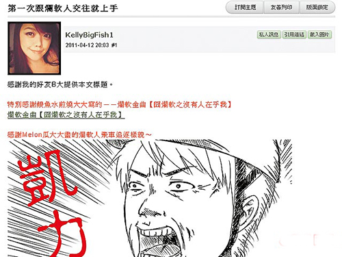 女網(wǎng)友凱力的“爛軟人”故事,讓她博客人氣破90萬(wàn),有網(wǎng)友畫成漫畫。圖片來(lái)源:臺(tái)灣媒體