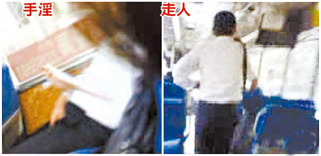 男子在公交車搓弄下體的過程(左圖)及下車時(shí)的身影(右圖),均被女學(xué)生拍下po網(wǎng)。圖片來源:臺灣媒體