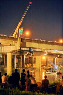 據(jù)專業(yè)人員分析,轎車落河后,陳婦很可能從破窗漂出車外。目前,警方正搜證追查,昨晚搜尋未獲,今將繼續(xù)搜救。(中國臺灣網(wǎng) 劉志偉)
