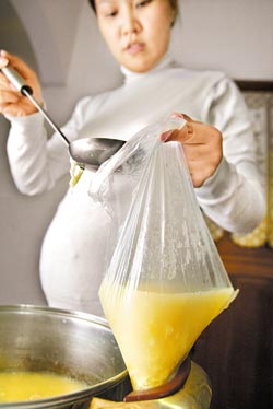 臺(tái)灣孕婦體內(nèi)塑化劑是美國(guó)人的10倍以上,可能殘害嬰兒,用塑料袋裝熱食會(huì)受塑化劑污染。圖片來(lái)源:臺(tái)灣《中國(guó)時(shí)報(bào)》