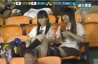 在9日的球賽轉(zhuǎn)播中,攝影師一如往常搜尋觀眾席上的正妹(美女)球迷,這時(shí)鏡頭對(duì)準(zhǔn)2名學(xué)生妹,不過(guò)學(xué)生妹似乎不曉得自己入鏡了,其中一名學(xué)生妹起身想要順順裙子,坐下的同時(shí)跨腿翹腳,沒(méi)想到竟意外曝光,這“春光外泄”的瞬間全程被鏡頭直擊。