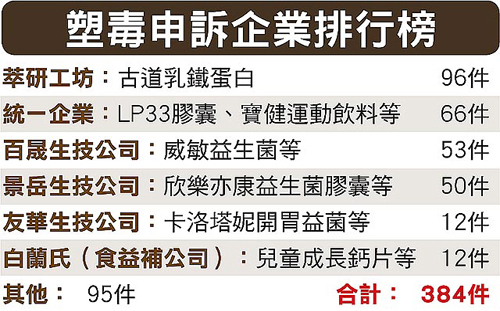 塑毒申訴企業(yè)排行榜。圖片來(lái)源:臺(tái)灣媒體